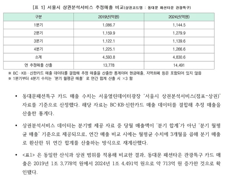 <서울디자인재단, 데이터 분석결과… 몇 년간 동대문 유동인구‧상권매출 모두 상승>