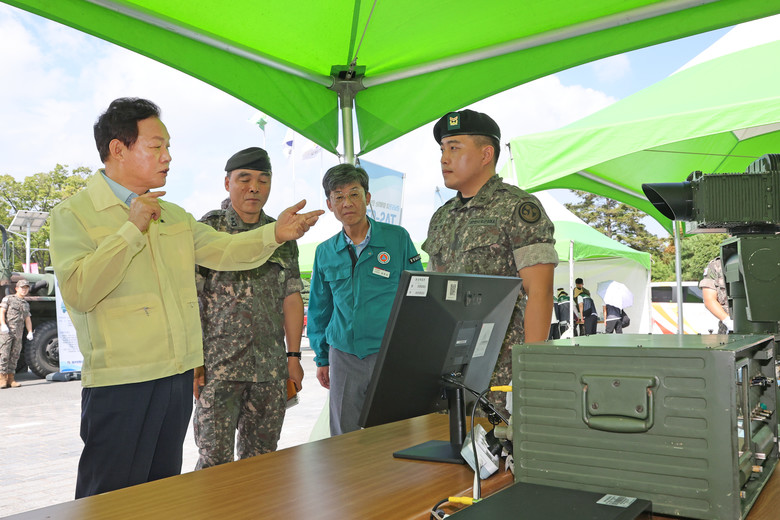 상황보고회의 이후, 박 지사는 39사단장 등과 함께 도청 광장에 마련된 ‘안보의식 고취의 장’을 찾아, 전시된 군사 장비와 구조‧구난 장비 등을 둘러봤다.