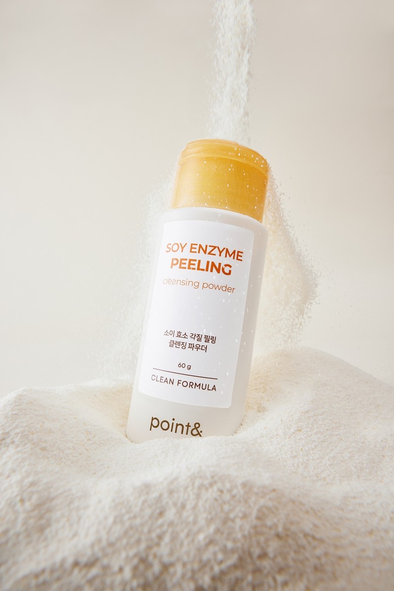 포인트앤 소이 효소 각질 필링 클렌징 파우더는 가루 형태의 클렌저로 각질과 피부 속 노폐물을 순하게 클렌징해주는 것은 물론 단백질 성분을 함유해 피부에 영양감을 채워 부드럽고 매끈한 피부결을 완성해 준다.