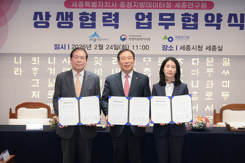 최민호 시장은 “세 기관이 보유한 데이터와 연구 역량이 결합된다면 시민이 체감할 수 있는 실효성 있는 정책이 설계될 수 있을 것”이라며 “협력체계 구축이 지역 경제와 사회 발전으로 이어지도록 노력하겠다”고 말했다.