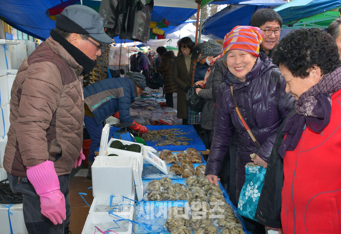 설 연휴를 3일 앞둔 지난 12일, 오일장이 열린 담양시장에 눈이 내리는 추운 날씨에도 설 제수용품을 고르는 사람들로 북적이고 있다.