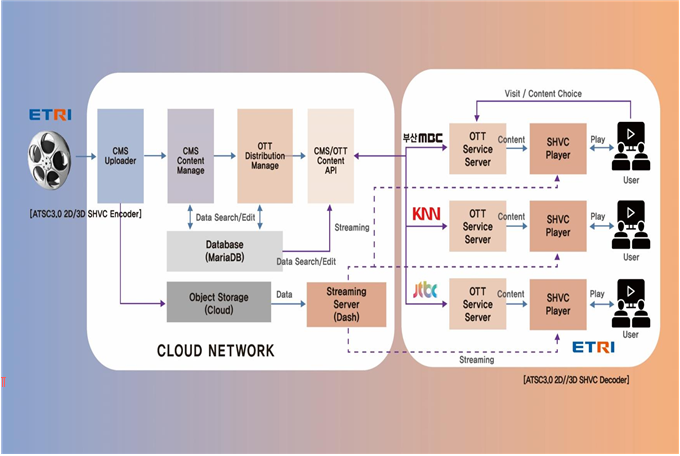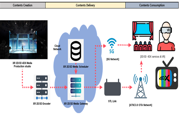 '차세대 인공지능(AI) 입체미디어 서비스 핵심기술'은 인터넷 동영상 서비스(OTT) 및 방송망을 통해 초고화질 방송(UHD), 가상현실(VR), 3차원(3D) 등 몰입형 실감콘텐츠를 2차원(2D) 서비스와 호환성을 유지하며 제공하는 기술이다.