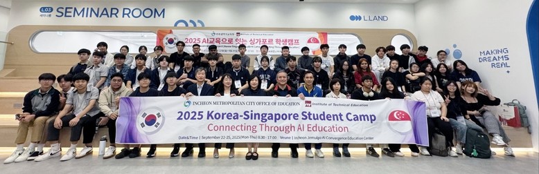 [인천 세계타임즈=심하린 기자] 인천광역시교육청(교육감 도성훈)은 9월 22일부터 25일까지 4일간 싱가포르 ITE West College 학생 30명과 인천 고등학생 19명이 참여한 ‘AI교육으로 잇는 학생 캠프’를 운영했다고 밝혔다.