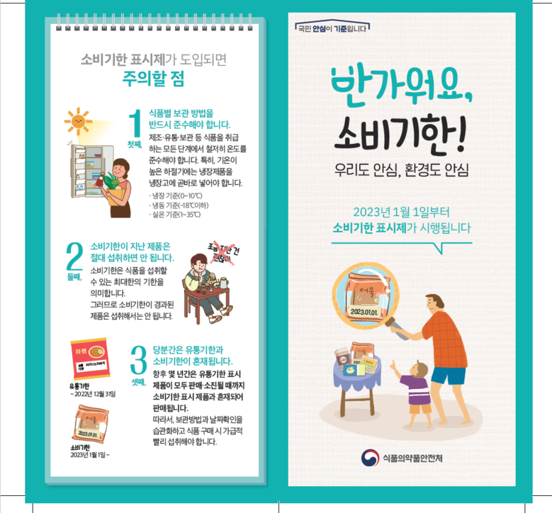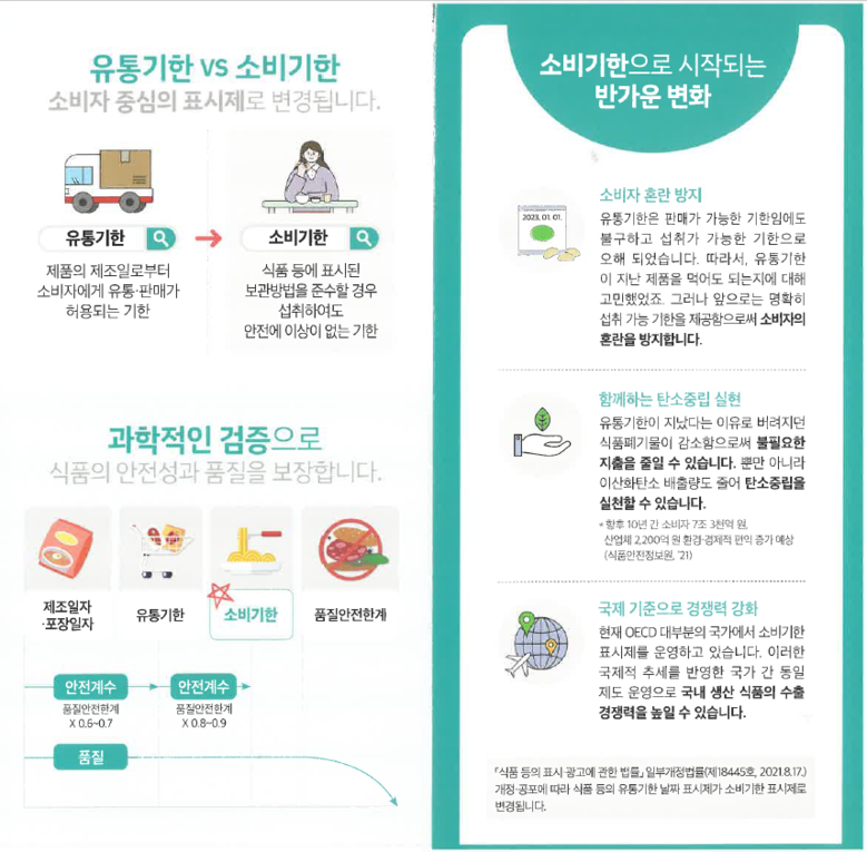 한편, 정부는 식품 등 폐기물 감소와 탄소중립 실현을 위해 38년 만에 유통기한 표시제를 폐지하고 올해 1월 1일부터 '소비기한 표시제'를 도입했다. 소비기한 표시제는 이후 1년의 계도기간을 거쳐 내년부터 의무 시행될 예정이다.