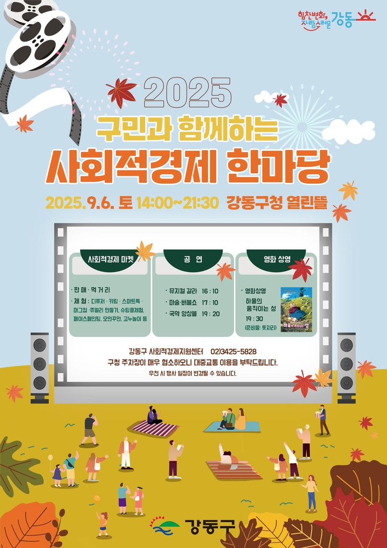 - 사회적경제기업, 공방 등 참여…판매, 체험, 볼거리, 먹거리 등 풍성 [강동구 세계타임즈=이장성 기자] 강동구(이수희 구청장)는 오는 9월 6일(토) 오후 2시 구청 앞 잔디광장 열린뜰에서 ‘ 2025 사회적경제한마당’을 개최한다고 밝혔다.