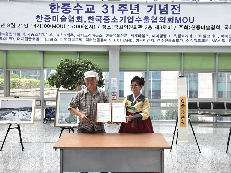 한중수교 31주년 기념 전시회 개막식에 앞서 우리나라의 현실에서 미술 단체들이 경제적 어려움에 직면하고 있는바 한중미술협회와 한국중소기업수출협의회가 상호 협력하는 MOU를 체결하였고, 앞으로 각 회원사들이 한중미술협회 회원들의 후원을 맡기로 하여 미술계와 경제계의 모범적인 협업 사례가 될 전망이다.