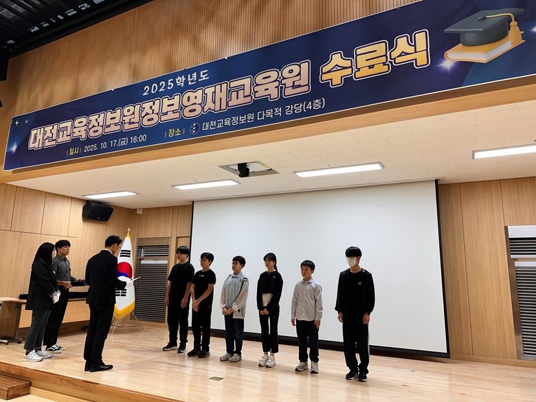[대전 세계타임즈=이채봉 기자] 대전교육정보원 정보영재교육원은 10월 17일 본관 다목적 강당에서 2025년 수료식을 열고 소프트웨어(SW), 로봇, 인공지능(AI) 분야의 정보 영재 교육과정을 마친 수료생들에게 수료증을 수여했다.