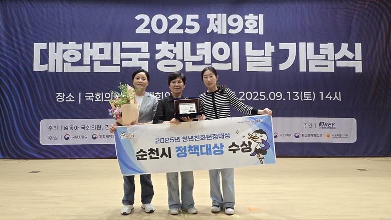 [순천시 세계타임즈=우덕현 기자] 순천시(시장 노관규)는 지난 13일 국회의원회관 대회의실에서 ‘제9회 대한민국 청년의 날’ 기념식과 함께 열린 ‘2025년 청년친화헌정대상’ 시상식에서 정책대상을 수상했다고 밝혔다.