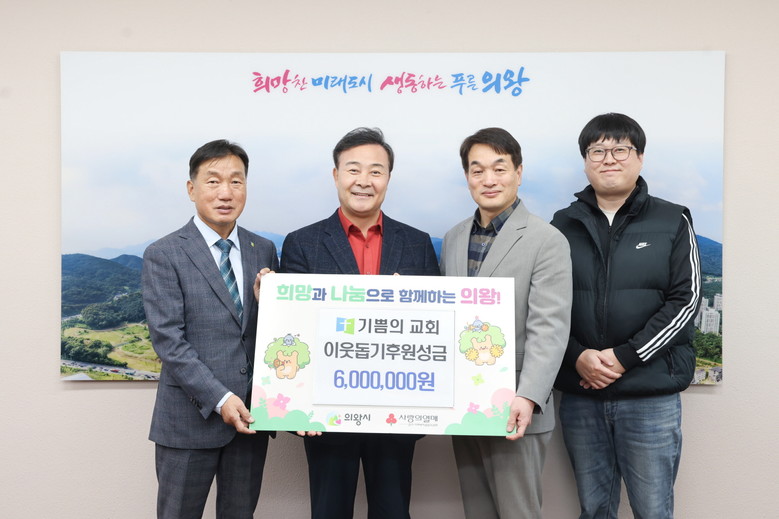 [의왕시 세계타임즈=송민수 기자] 의왕시(시장 김성제)가 12월 11일 관내 기쁨의 교회에서 지역사사회 나눔실천을 위한 이웃돕기 성금 600만원을 지정 기탁했다고 밝혔다.