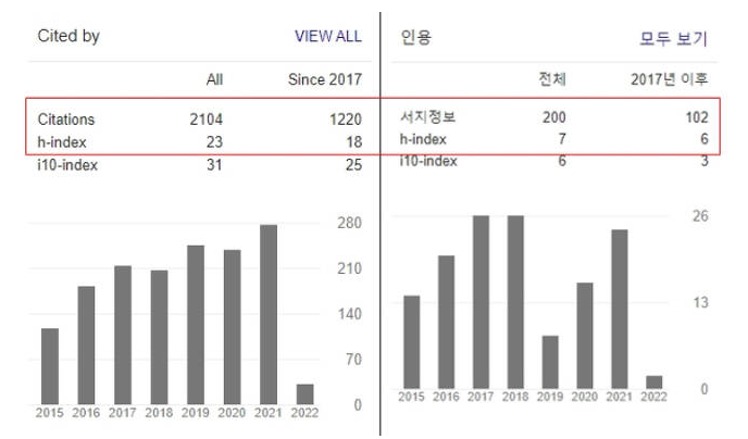 최교수가 이야기한 ‘학문적 업적도'(h-index)란 연구자의 생산성과 영향력을 나타내는 지표이며, ‘논문인용지수'(total citations)란 다른 연구자가 해당 연구자의 논문을 얼마나 인용했는지를 나타내주는 것으로 연구자의 논문의 질적 수준을 나타내는 지표이다.