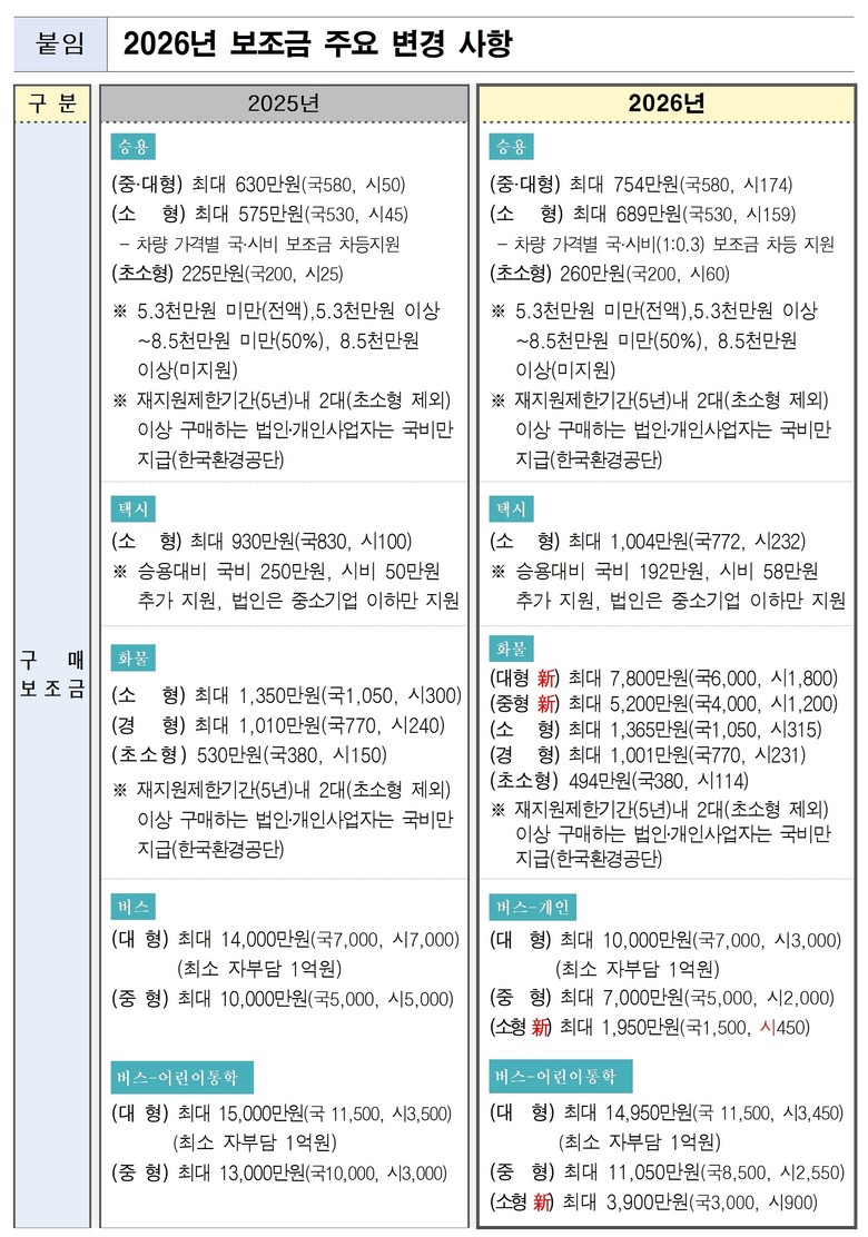 - 중·대형 전기화물차, 소형 전기승합 신규 지원으로 상용차 전환 가속