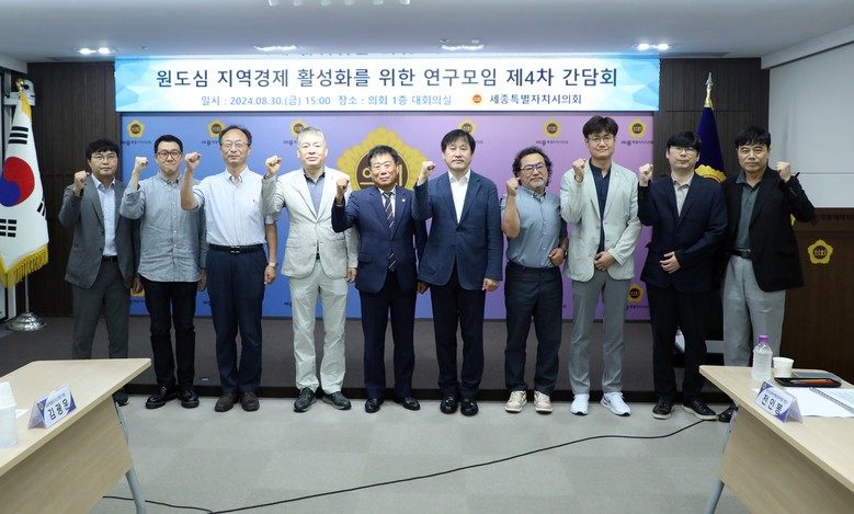 [세종 세계타임즈=이채봉 기자] 세종특별자치시의회(의장 임채성)는 15일 오후 3시 의회청사 대회의실에서 ‘원도심 지역경제 활성화를 위한 연구모임(대표의원 김충식)’ 제4차 간담회를 개최했다.
