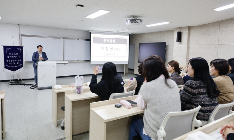 연수는 시교육청 전주아 유보통합센터장이 ‘광주시교육청 유보통합 사업 추진 현황’ 강의를 진행하고, 이어 유보통합 관련 정책 방향, 시교육청 추진 현황, 통합교육 환경 조성 등 주요 사업을 안내했다.
