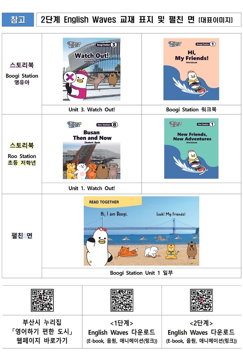 먼저, 부산시 누리집과 들락날락 플랫폼 등을 통해 교재 E-book, 음원, 애니메이션, 학부모 가이드 등 다양한 디지털 콘텐츠를 무료로 공개하여 언제 어디서나 교재에 접근할 수 있는 온라인 기반을 마련한다.