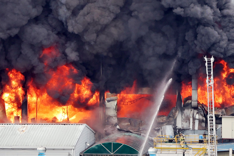 [광주 세계타임즈 = 손권일 기자] 17일 오전 광주 광산구 송정동 금호타이어 광주공장에서 불이 나 검은 연기가 치솟고 있다.