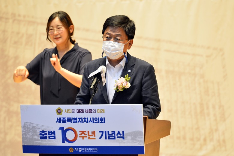 세종시의회 상병헌 의장은 기념사에서 “세종시의회는 출범 10주년을 계기로 주민들로부터 신뢰받는 기관으로 자리매김하고 행정수도 세종 완성으로 전국 국토가 고루 잘 사는 대한민국을 만드는 데 최선을 다하겠다”고 말했다.