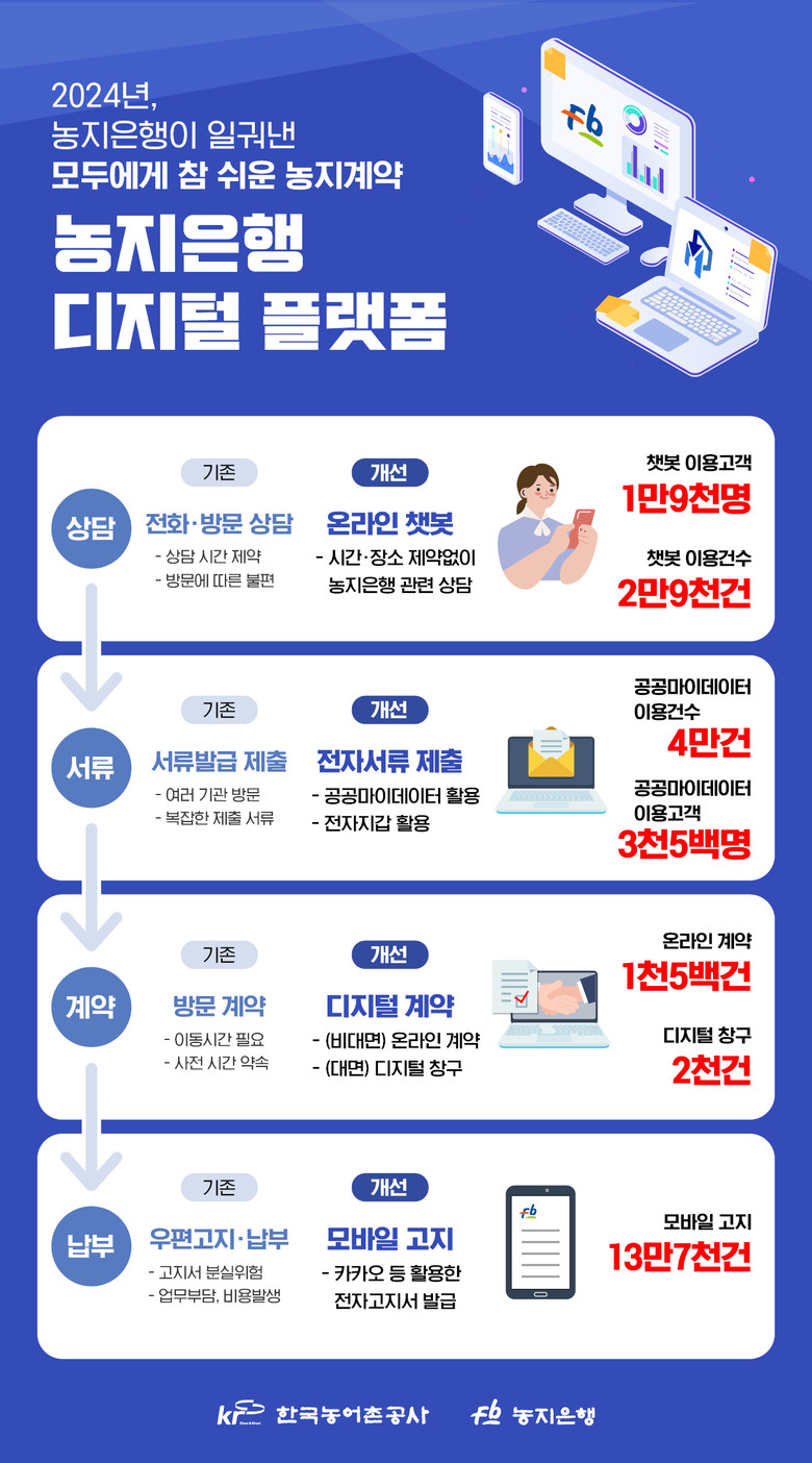 공사는 올해도 디지털 농지은행 고도화를 추진한다. 시스템 이용 속도를 향상하고, 공공 마이데이터를 통한 서류 제출 항목을 확대하는 등 서비스 개선에 박차를 가할 예정이다.