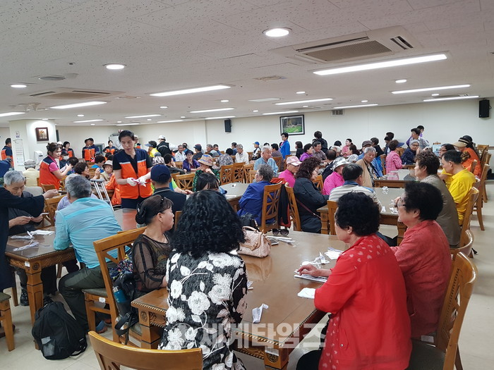 [대전=세계타임즈 이장성 기자] 다양한 봉사활동을 하고 있는 5천명 봉사 빅밴드 사랑의 사다리 밴드(리더 이정제)는 28일 유성구 장애인 복지관에서 오전 11시부터 대전광역시 지체장애인협회 유성구지회(지회장 박종해)의 월례회의에 참석한 200여명의 회원들에게 바베큐 통닭 봉사로 훈훈한 이웃사랑을 전했다.