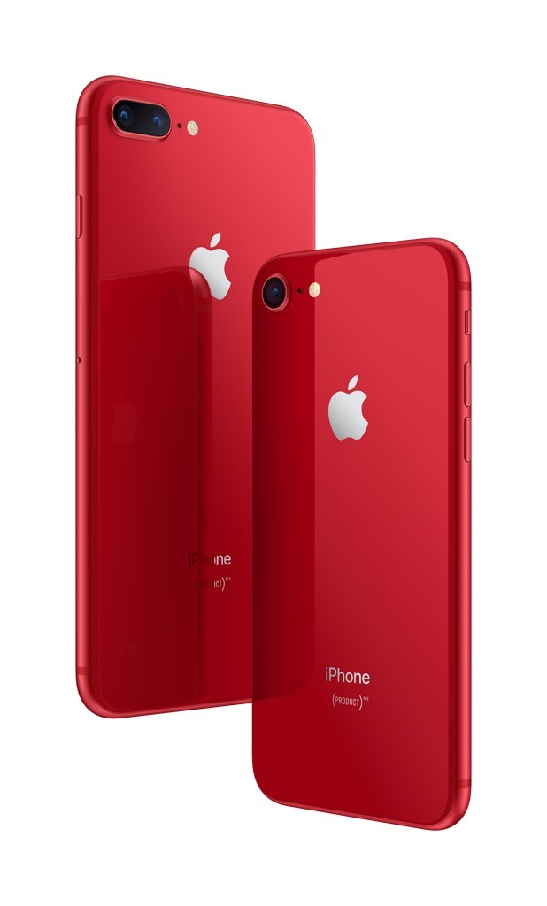 iPhone 8 과 iPhone 8 Plus는 유리소재 마감과 알루미늄 밴드 디자인이 조화를 이룬다. 또 무선 충전 기능과 1,200만 화소 듀얼 카메라는 다양한 조명을 활용하는 인물 사진 모드로 인기를 끌고 있다. 빨간 색상의 아이폰은 작년 3월 출시된 Special Edition과 마찬가지로 수익의 일정 금액이 에이즈 없는(AIDS-Free) 사회를 만드는데 기여하는 글로벌 펀드에 기부된다.