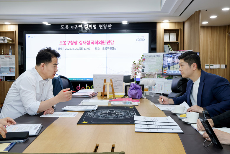 [도봉구 세계타임즈=이장성 기자] 오언석 도봉구청장이 8월 29일 오후 도봉구청 구청장실에서 지역 국회의원인 김재섭 의원을 만나 지역 현안을 논의했다.