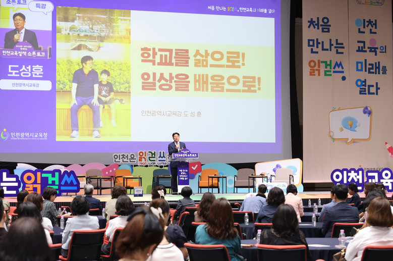 [인천 세계타임즈=심하린 기자] 도성훈 인천광역시교육감은 6월 30일 송도 컨벤시아에서 열린 ‘오늘을 읽고, 미래를 여는 인천교육정책 소통 콘서트’에 참석해 유치원 및 어린이집 교직원·학부모와 소통의 시간을 가졌다.