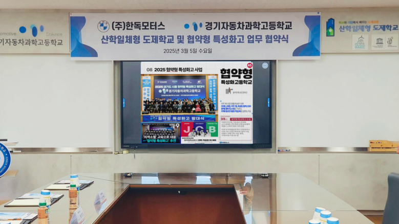 [시흥시 세계타임즈=송민수 기자] 경기자동차과학고등학교(교장 김임식)와 (주)한독모터스는 2025년 3월 5일(수) 11시 대외협력실에서 ‘산학일체형도제학교 및 협약형 특성화고 산학협력을 위한 업무 협약식’을 개최하고, 자동차 산업을 선도할 우수 기술 인재 양성을 위한 협력을 공식화했다.