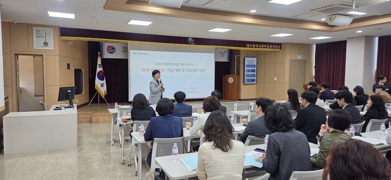 연수는 대구시교육청 박은정 장학사가 위기 사안 발생 이전 단계의 선제적 대응 방안으로 ▲학생 마음 건강 및 자살 예방 교육 ▲학교 현장에서의 위기 대응 매뉴얼 실천 등을 실제 사례 중심으로 안내했다.