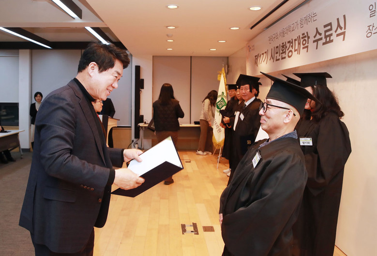 수료식에는 박준희 관악구청장을 비롯한 서울대 환경대학원장과 교수진, 교육생과 가족 등 70여 명이 참석했고, 전체 수료생 중 40명이 수료증을 받았다.