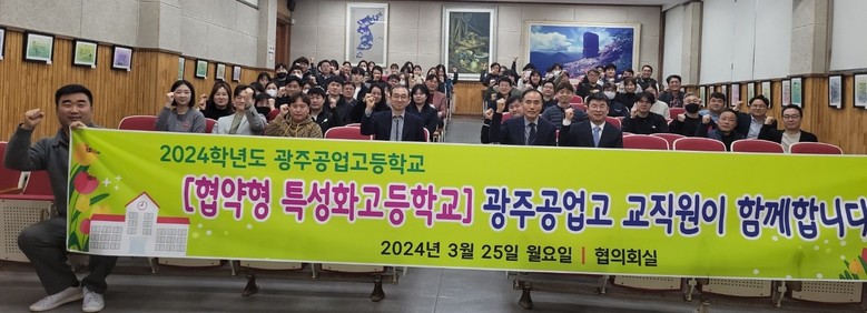 [광주 세계타임즈=손권일 기자] 광주공업고등학교가 지난 25일 교육부 공모사업인 「협약형 특성화고」 지정을 위해 학교 구성원 전체가 결의를 다지는 자리를 마련했다.