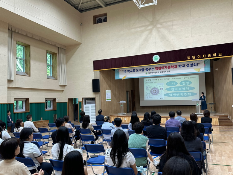 [파주시 세계타임즈=송민수 기자] 파주 법원여자중학교(교장 이민서)는 9월 4일(수) 학교 발전방안 모색 및 IB(International Baccalaureate) 교육 확산의 일환으로 학부모, 지역주민을 포함한 교육공동체가 함께 참여하는 ‘IB 학교설명회’를 개최하였다.