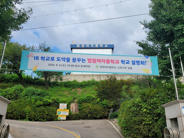 법원여자중학교는 올해 IB관심학교로 지정되어 IB(International Baccalaureate) 철학과 교육과정에 대해 학교구성원이 함께 공유하고 지역사회 및 학교 발전을 위한 방안을 강구하고 있다.