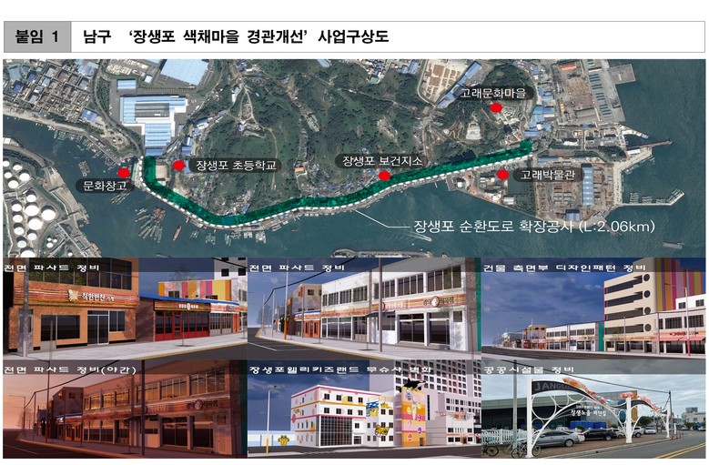 ▲남구의 ‘장생포 색채마을 조성사업’은 남부권 광역관광개발, 장생포 순환도로 확장공사와 연계해 추진된다. 사업비는 10억 원(시비 5억 원, 구비 5억 원)이 투입된다.