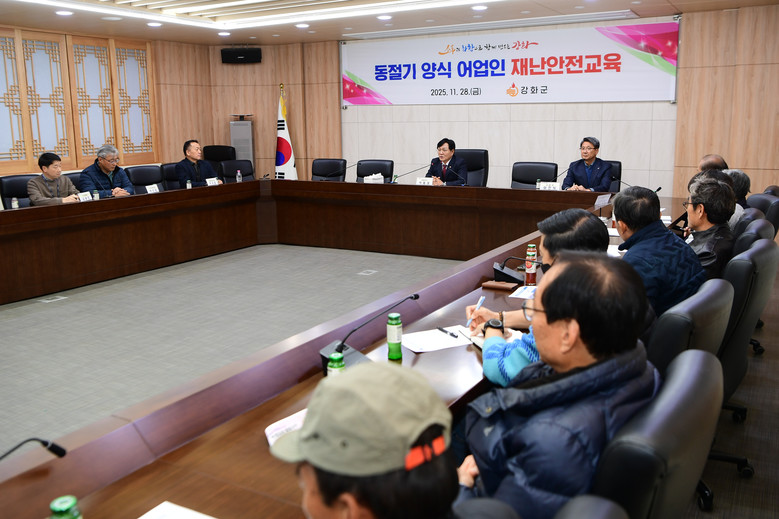 [강화군 세계타임즈=심하린 기자] 강화군(군수 박용철)은 지난 11월 28일 양식 어업인의 안전 인식을 높이고, 현장의 고충을 청취하기 위해 ‘2025년 양식어업인 재난안전교육’을 실시했다.
