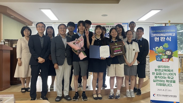 구리남양주교육지원청 서은경 교육장은 “이번 현판식은 단순한 시상이나 지정이 아니라, 학생·교직원·학부모 모두가 환경 변화의 주체로 참여한 실천의 결과를 함께 축하하는 자리”라며, “앞으로도 그린미래실천학교가 지역사회와 연대해 기후위기 대응의 모범적 모델로 자리매김할 수 있도록 적극 지원하겠다”고 밝혔다.