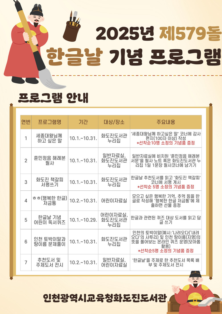 인천광역시교육청화도진도서관, ‘579돌 한글날 기념 행사’ 운영