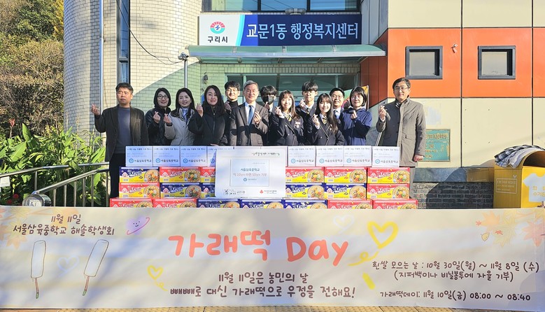 이번 ‘가래떡 데이’ 활동은 학교 행사에서 끝나는 것이 아니라 추운 겨울을 지낼 어려운 이웃을 위하여 구리시 교문1동 행정복지센터에 약 40kg의 가래떡을 기증하여 사랑 나눔을 실천한다는 의미를 더했다.