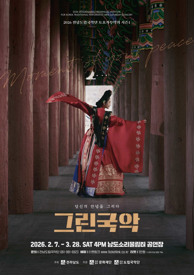 전남도립국악단은 14일을 포함해 매주 토요일 남도소리울림터에서 ‘토요 가무악희 그린국악’ 공연을 이어가며 명절 분위기를 돋운다.