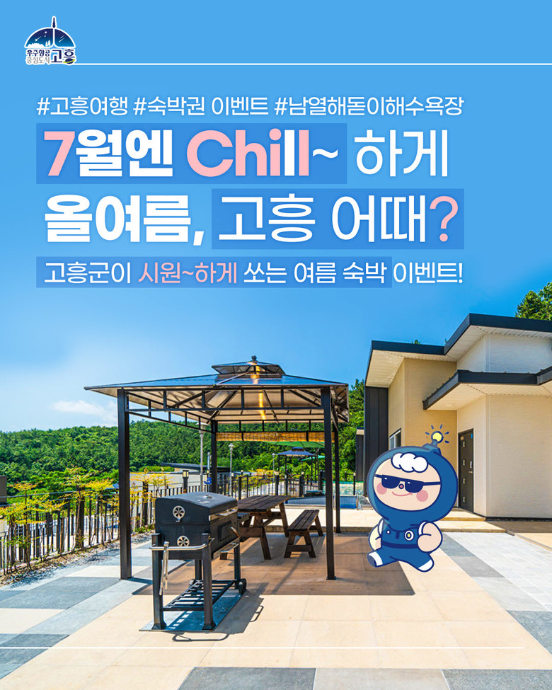 이번 이벤트는 여름 휴가철을 맞아 고흥군 공식 SNS 활성화와 전국 관광객들에게 고흥의 청정 자연, 맛있는 음식, 녹동항 드론쇼 등 다양한 즐길거리를 소개하기 위해 마련됐다. 참여자 중 1명을 추첨해 남열해돋이해수욕장과 고흥우주발사전망대가 보이는 오션뷰 펜트하우스 숙박권을 증정할 예정이다.