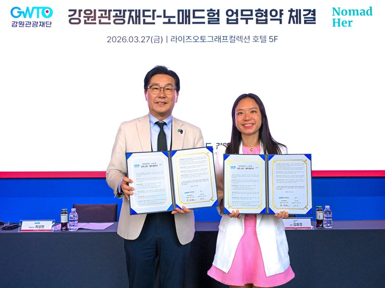 또한, 재단은 글로벌 여성 여행 플랫폼 ‘노매드헐’과 업무협약을 체결하고, 구미주 인바운드 관광 시장 선점에 나섰다. 양측은 이번 협력을 계기로 실무 전담 체계를 구축해 ▲지역 상생 공동사업 ▲특수목적(SIT) 관광상품 개발 ▲방한객 상호 지역 교류 활성화 등 구체적인 실행 과제를 추진하기로 했다. 특히 노매드헐이 보유한 외국인 관광객의 여행 데이터를 분석·접목해 강원만의 차별화된 로컬 콘텐츠를 고도화하고, 이를 바탕으로 북미와 유럽 시장 공략을 가속화 한다는 구상이다. 이번 협업은 강원 관광의 국제적 인지도를 제고하고 시장 다변화를 이끄는 실질적인 동력이 될 것으로 전망된다.