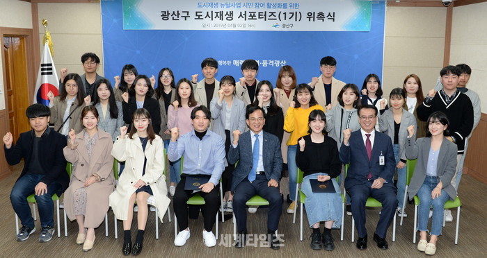 김삼호 광산구청장은 위촉식에서 “대학생 여러분이 참신한 아이디어로 광산구 도시재생사업에 활력을 불어넣어주길 바란다”며 “내 손으로 내가 사는 도시를 아름답게 꾸미는 멋진 일에 최선을 다해주면 좋겠다”고 밝혔다.