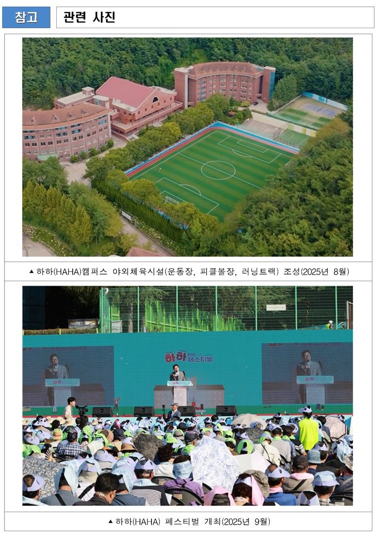 아울러, 지난 10월 문화체육관광부가 주관하는 ‘2026년 생활체육시설 확충 지원사업’ 공모에 ‘하하스포츠센터 건립사업’이 선정돼 국비 40억 원을 확보했다.