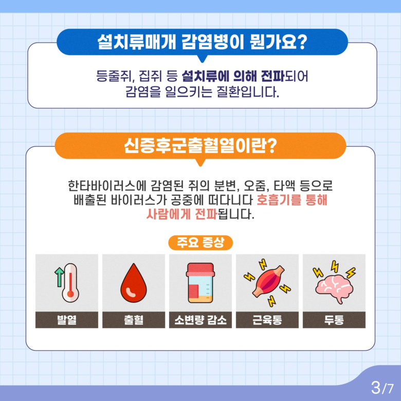 ○ 쥐 매개 감염병 관리 : 감염병 발생여부 감시 및 신속한 역학조사, 쥐 매개 감염병 예방법 및 쥐 발견 시 대처 신고 요령 홍보