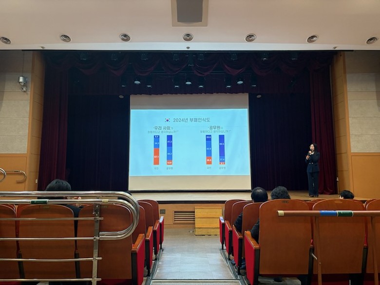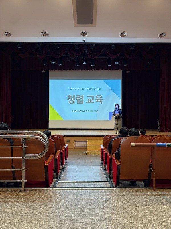 이번 교육은 경기도교육청 조연희 감사관이 강사로 참여해 「청탁금지법」, 「이해충돌방지법」, 「공무원 행동강령」 등 공직자가 반드시 알아야 할 주요 법령을 사례 중심으로 안내하며, 청렴의식 제고와 공정한 행정문화 조성을 위한 현장 중심의 실천형 청렴행정 정착을 강조했다.