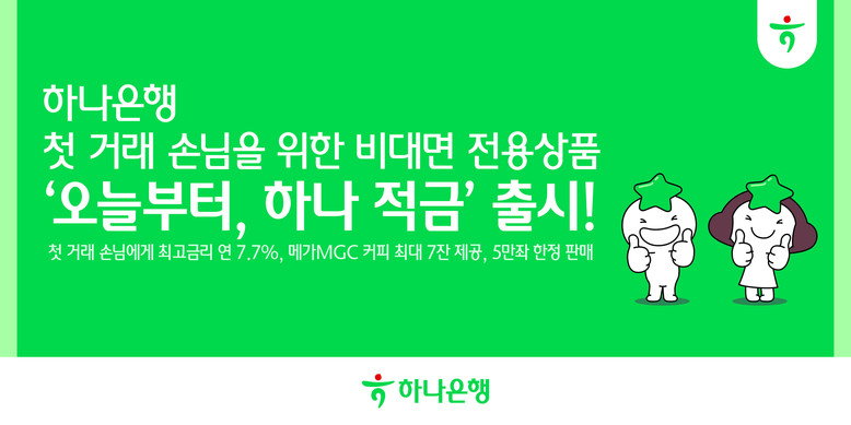 하나은행 관계자는 “하나은행과 처음 거래하는 손님에게 복잡한 조건 없이도 실질적인 혜택이 돌아갈 수 있도록 상품을 기획했다.”며, “앞으로도 하나은행과 처음 거래하는 손님을 위한 다양한 금융혜택을 제공해 차별화된 서비스를 확대해 나가겠다.”고 밝혔다.