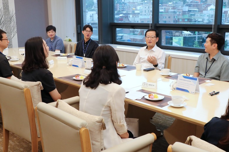 조병규 은행장은 이날 참석한 MZ 행원 모두의 별칭을 부르고 관심사와 애로사항을 먼저 들었다. 이 자리에서 조병규 은행장은 ‘대출 신청 의견만 쓰다가 보고서를 쓰려니 너무 힘들고 어렵다’고 고민을 털어 놓은 행원에게 ‘보고서 작성 꿀팁’을 공유하면서, “걸으면서 사색하다보면 복잡했던 일도 해결책이 보이고 새로운 아이디어도 떠오른다”며, 매일매일 걷는 시간을 가져 볼 것을 권하기도 하였다.