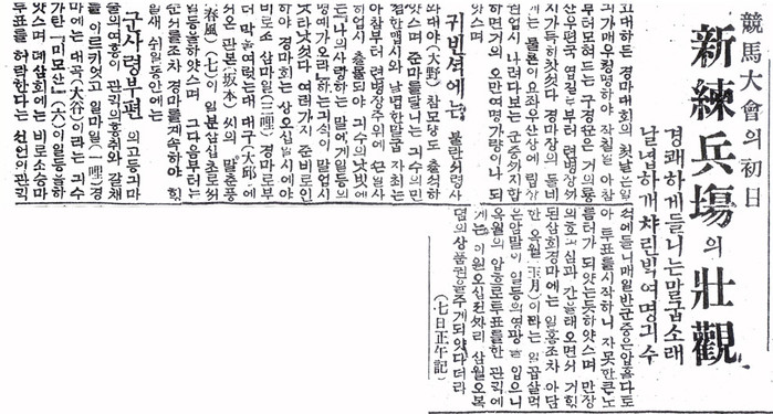 1921년 국내 최초 경마시행에 대해 자세하게 소개한 동아일보 기사