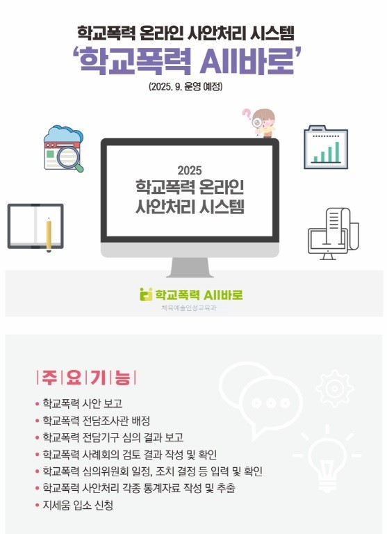 ▲학교폭력 사안 보고를 비롯해 ▲전담조사관 배정 ▲전담기구 심의 결과 보고 ▲사안처리 각종 통계자료 작성 및 추출 등을 학교폭력 신고 접수부터 사후 대응까지 모든 과정을 전국 최초로, 온라인으로 원스톱 지원한다.