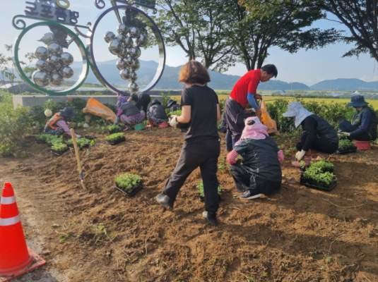 [강화군 세계타임즈=심하린 기자] 강화군 양도면 주민자치위원회(위원장 김혜경)가 지난 15일, 길정리 포도 조형물 가로화단에 가을꽃을 식재했다고 밝혔다.