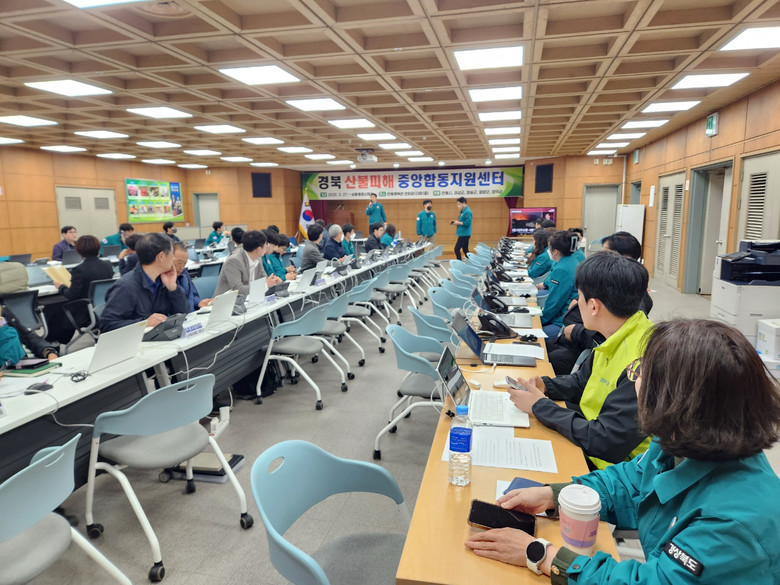 합동지원센터는 안동체육관 지하 연회장에 설치됐으며, 안동시와 행정안전부 등 50여 명으로 구성된 관계기관 합동 조직으로 관할지역은 산불로 큰 피해를 입은 안동시, 의성군, 청송군, 영양군, 영덕군까지다.