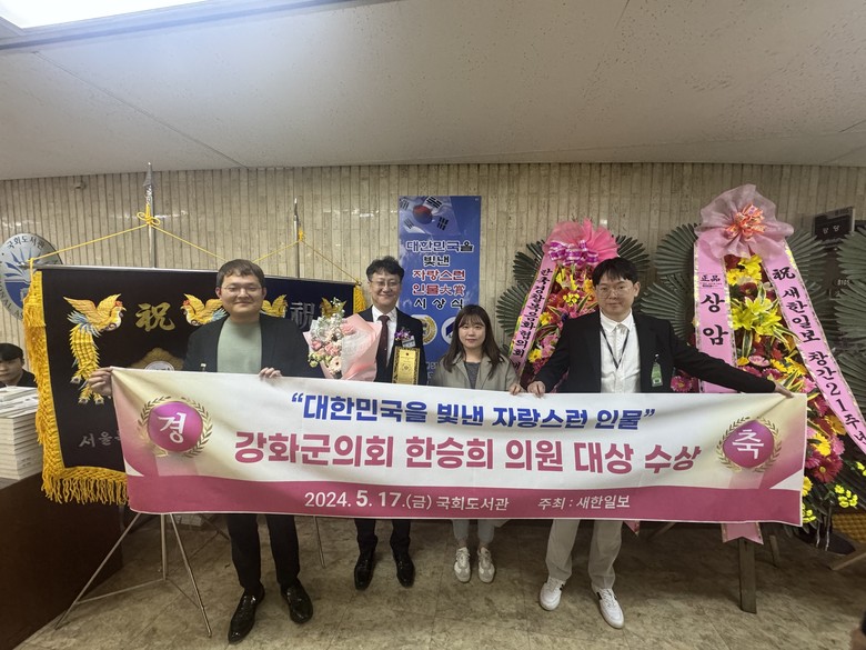 [강화군 세계타임즈=심하린 기자] 강화군의회 한승희 의원(국민의힘)이 지난 17일 국회도서관에서 열린 '대한민국을 빛낸 자랑스런 인물' 시상식에서 기초의회 분야 대상을 수상했다.
